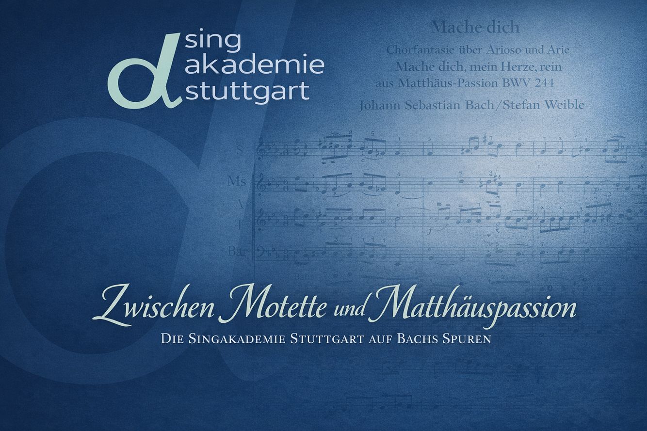 Den Auftakt bildete eine Bearbeitung der Chorfantasie über Arioso und Arie „Mache dich, mein Herze, rein“ (aus BWV 244) für 12-stimmigen Chor a cappella. Diese Transkription eröffnet der Singakademie einen neuen Zugang zur Musik Johann Sebastian Bachs. Die Uraufführung fand im Frühjahr in Esslingen statt.